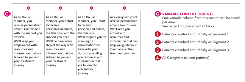 The profiles above were initially created to tailor our ORENCIA relationship-marketing program, known as OnCall, to communicate with patients (and caregivers) based on their individual needs and experiences. Now we are looking for ways to apply the same profiling principals to "deciders" who are in that all important moment of consideration whether to seek a new therapy. Those could be RA patients new to biologics coming off methotrexate or those who are unsatisfied or intolerant to their current biologic therapy. Knowing that can not only direct our tone of voice, but even the data sets we use to inform their decisions. Sometimes it's just about depth of information, you don't want to give a doctor-reliant believer too much. Just seed some doubts and drive them to ask the doctor the right questions.