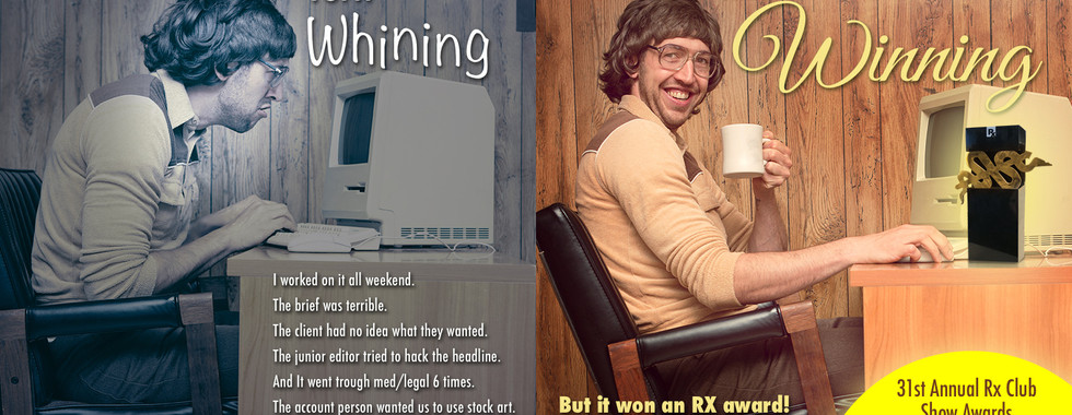 The body copy spoke to the all too true realities of life as a creative in advertising. It was a chance to show our peers that we share their trials and travails. Our life may be hard, but at least you can still win an Rx for it.